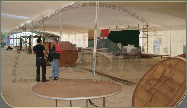 Lonas y Decoraciones Industriales, S.A de C.V. Le ofrece innovación de carpas Nuestras carpas son un elemento importante durante los eventos deportivos, sociales o campañas publicitarias. También puede ser usada como entradas, camerinos o carpa de recepción. Su facilidad de uso le convierte en un soporte publicitario muy importante para el marketing. Diseñamos y fabricamos carpas en distintos tamaños y diseños.